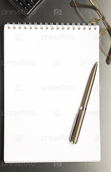 Блокнот с ручкой и очками
