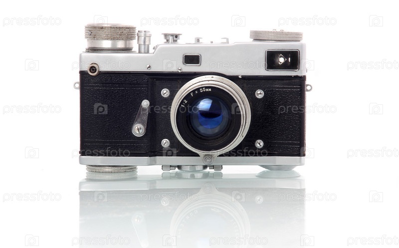 Устаревшая модель фотоаппарата, изолированная на белом фоне