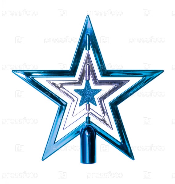 Синяя рождественская звезда крупным планом на белом фоне