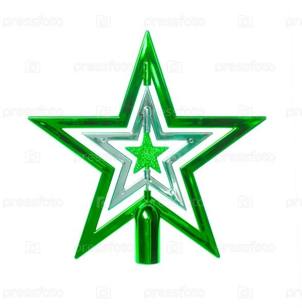 Зеленая рождественская звезда крупным планом на белом фоне