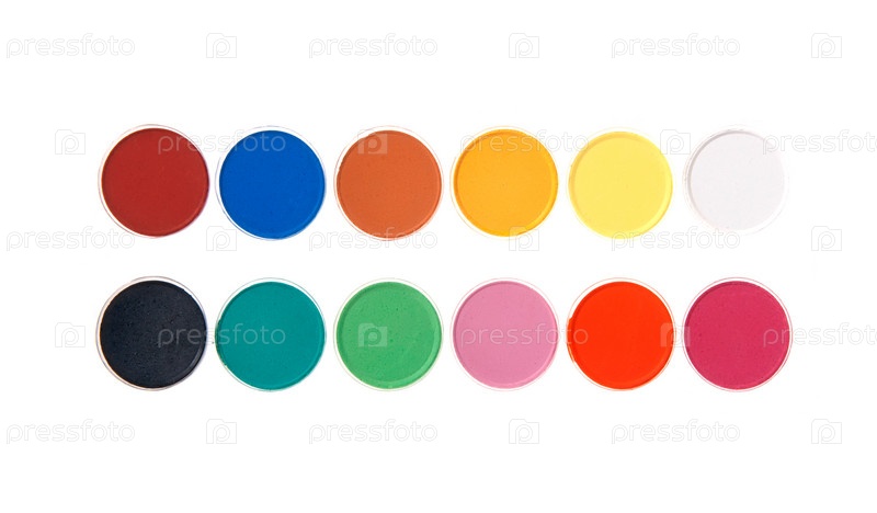 Акварельные краски крупным планом на белом фоне