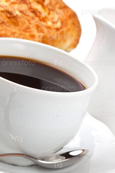 Чашка кофе и булочка с сыром крупным планом
