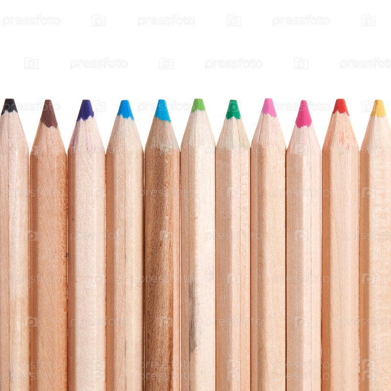 Цветные карандаши крупным планом на белом фоне