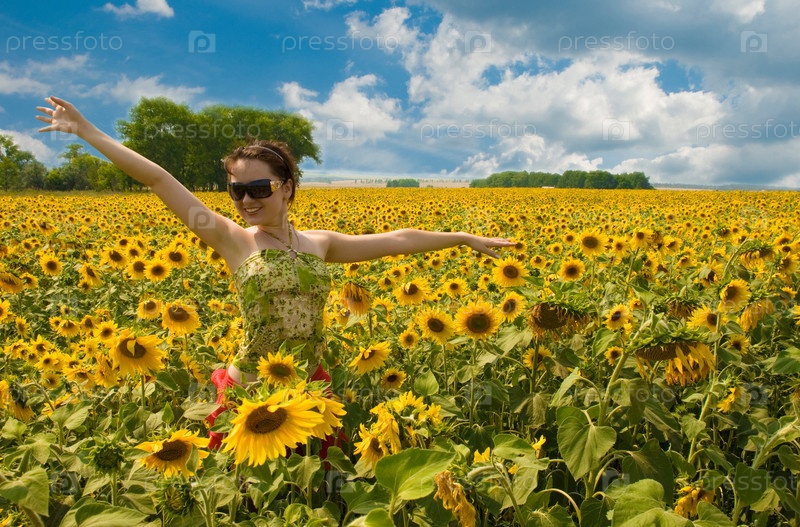 Портрет молодой девушки в подсолнуховом поле