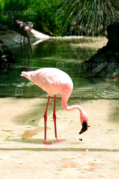 Розовый фламинго возле воды