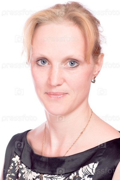 Портрет голубоглазой женщины, изолированной на белом фоне