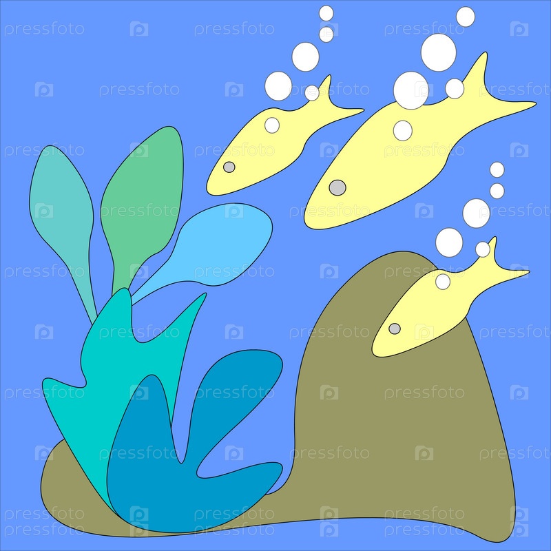 Рыбы и морские растения на голубом фоне