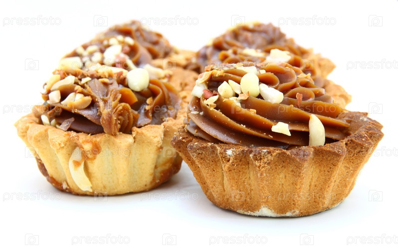 Свежие пирожные на белом фоне