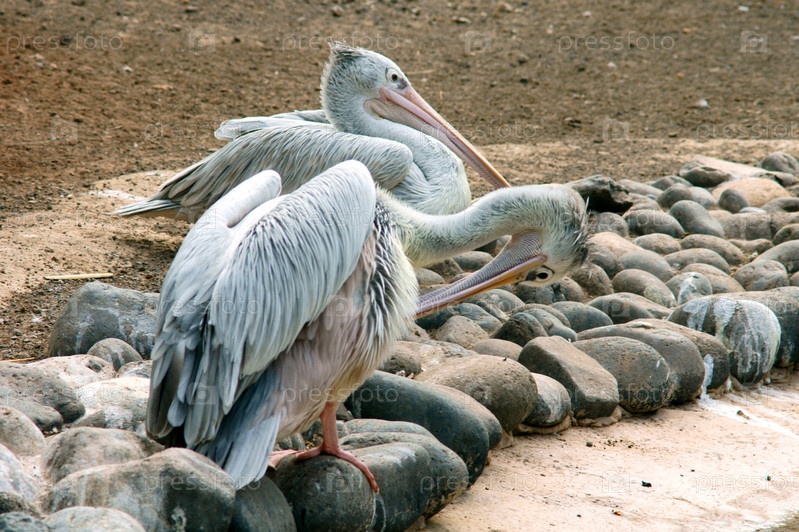 Два пеликана сидят на камнях
