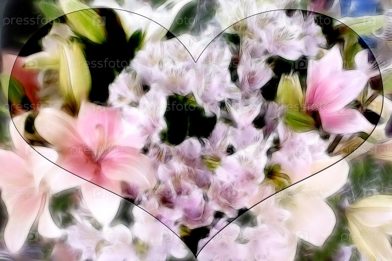 Сердце на фоне букета цветов