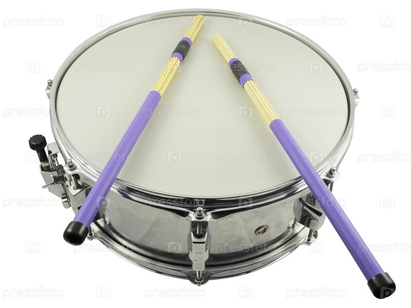 Барабан с палочками на белом фоне