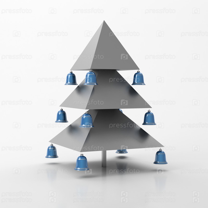 Серая рождественская елка с голубыми колокольчиками на сером фоне