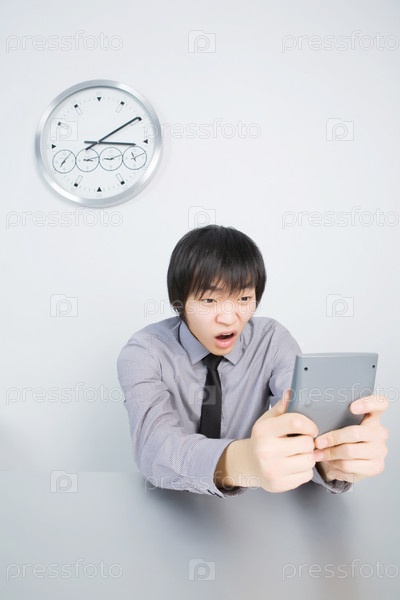 Недовольный молодой человек, сидящий за офисным столом