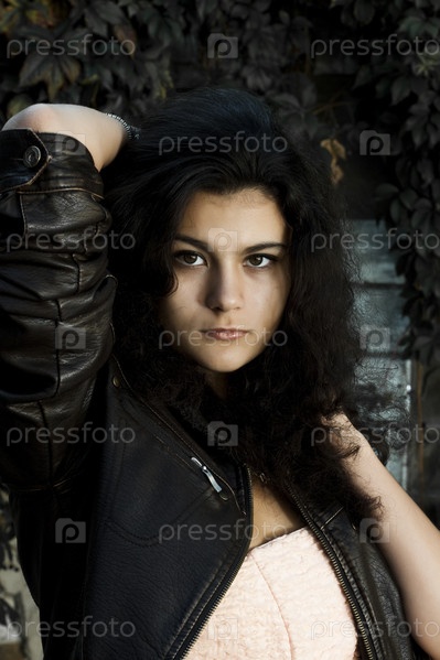 Брюнетка в кожаной куртке