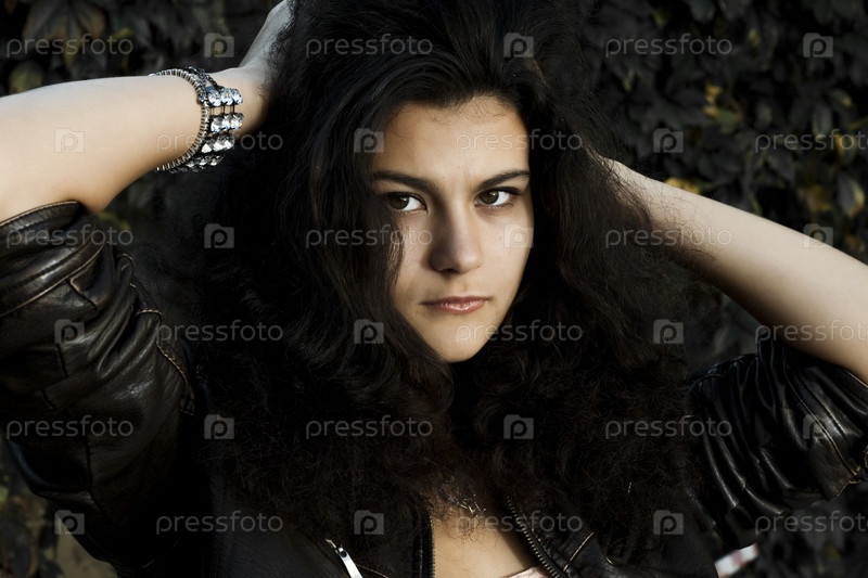 Брюнетка в кожаной куртке