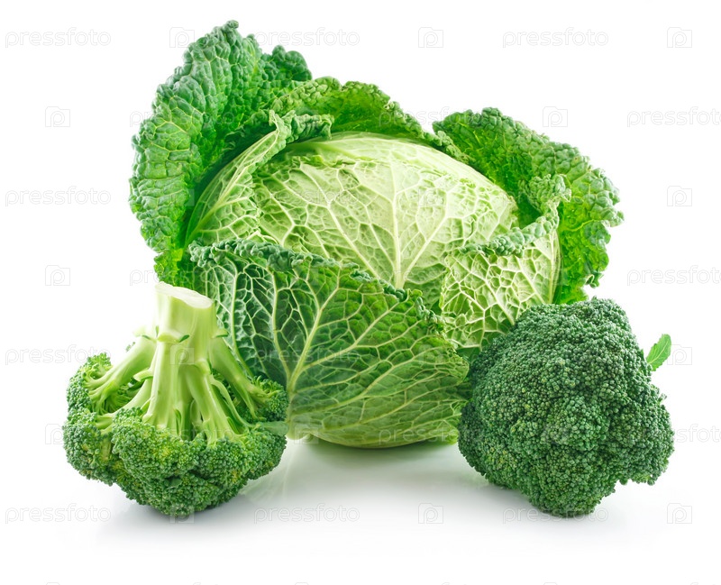 Брокколи и савойская капуста крупным планом на белом фоне
