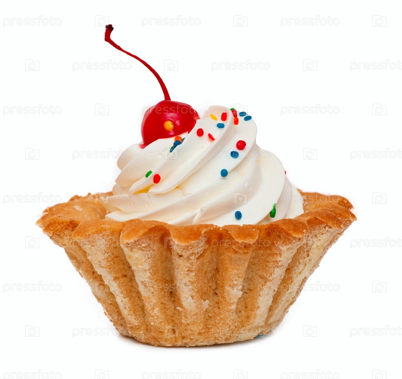 Пирожное в форме корзиночки со сливками и вишней
