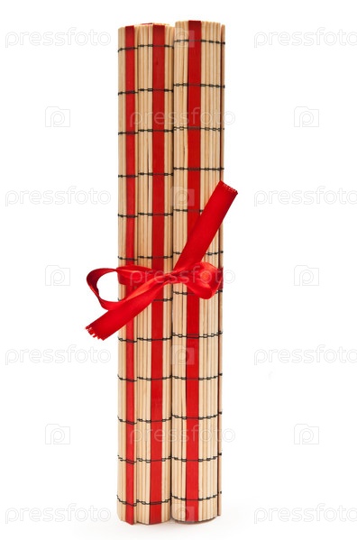 Закрученный и перевязанный лентой коврик из бамбука