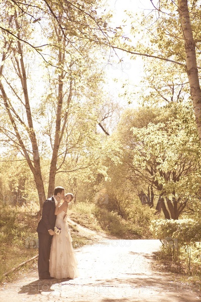 Жених и невеста в парке