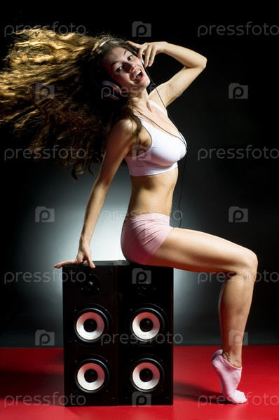 Молодая красивая девушка слушает музыку с удовольствием