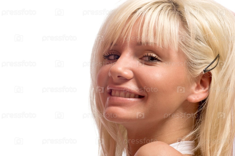 Портрет красивой девушки со светлыми волосами на белом фоне