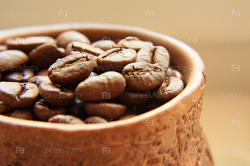Кофейные зерна в чашке крупным планом