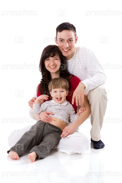 Портрет счастливой семьи на белом фоне