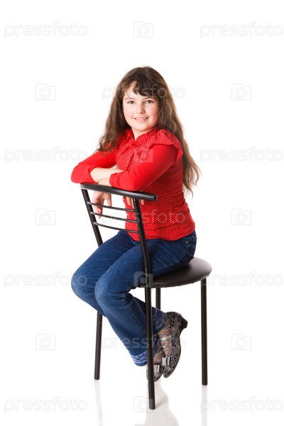 Портрет девочки на стуле на белом фоне