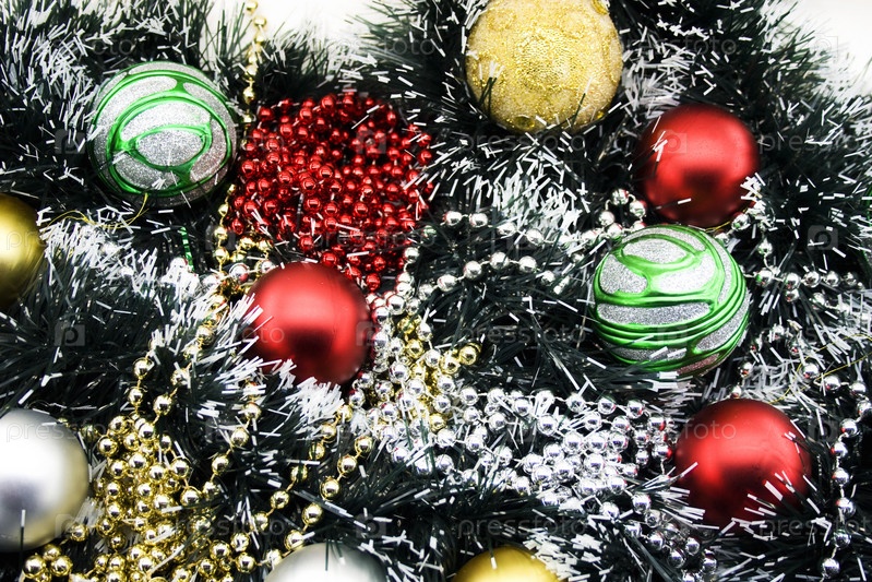 Многоцветные украшения рождественской елки вблизи