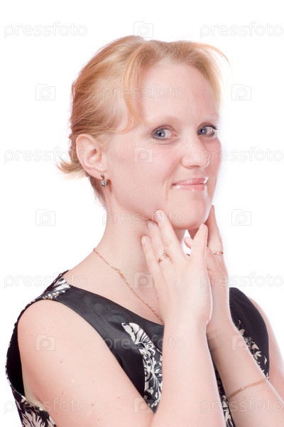 Портрет молодой женщины на белом фоне