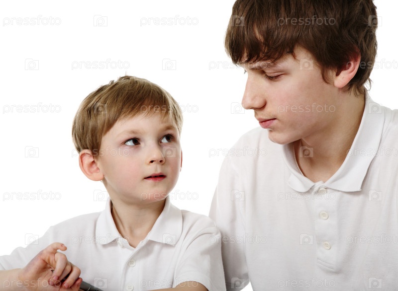 Мальчик и парень, изолированные на белом фоне