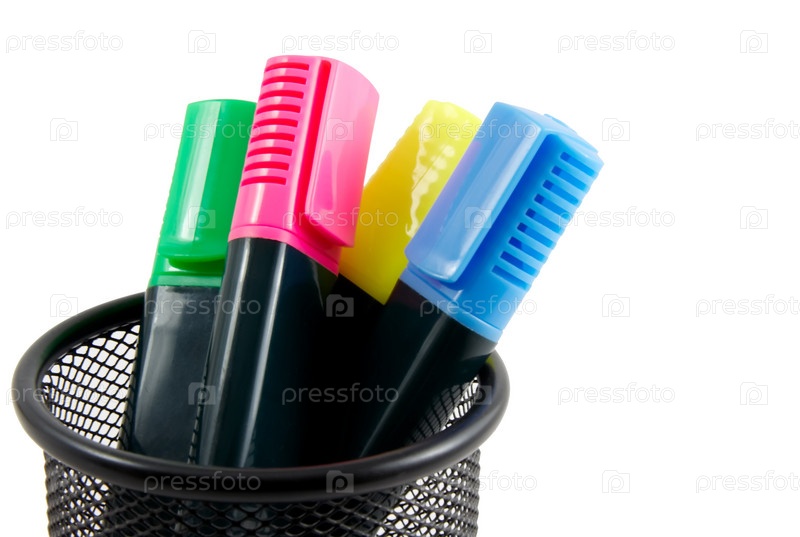 Четыре цветных маркера изолированы на белом фоне