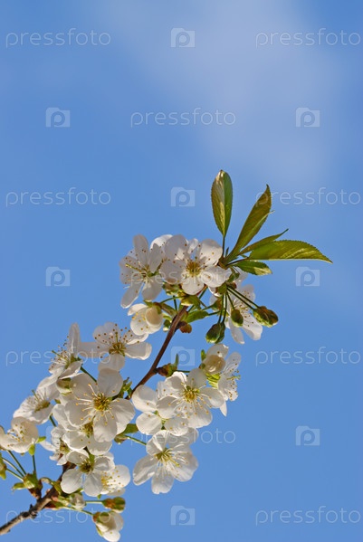Цветущая ветка на фоне голубого неба