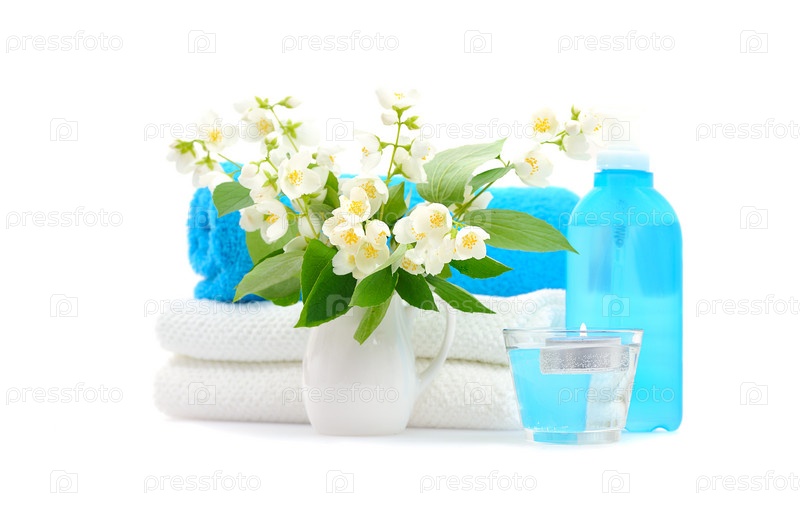 Букет жасмина в вазе на белом фоне