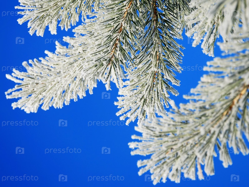 Сосновые ветки, покрытые инеем