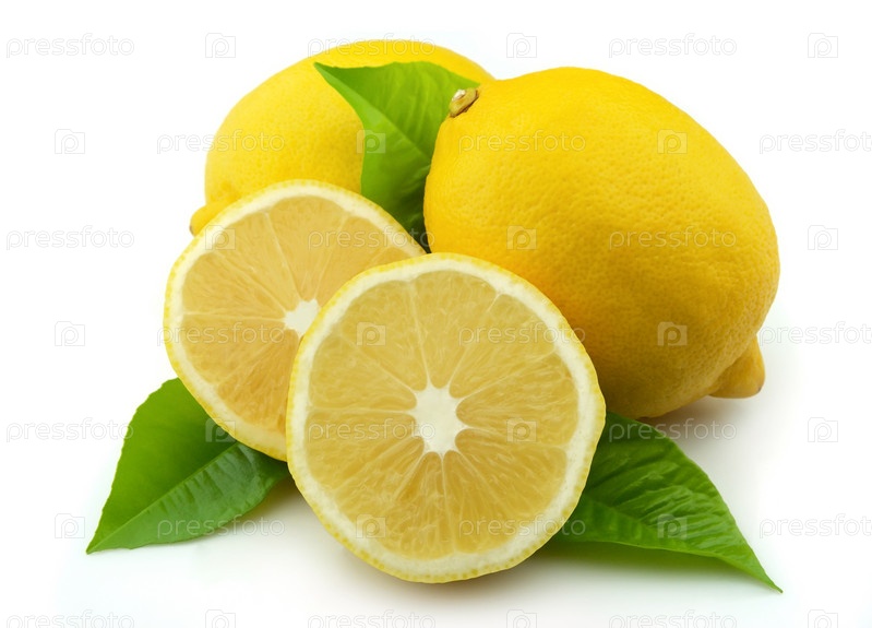 Лимоны с листьями, изолированные на белом фоне