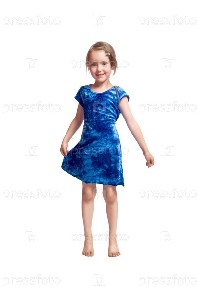 Симпатичная девочка в нарядном синем платье на белом фоне