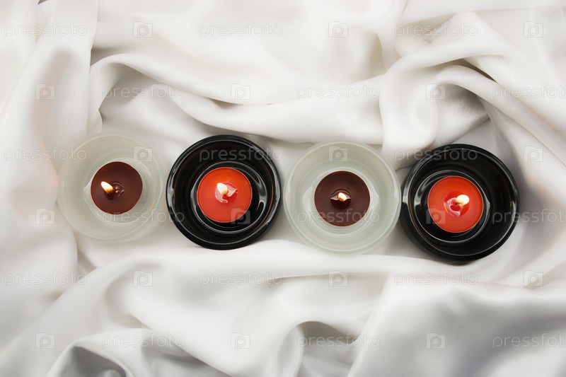 Свеча в светильниках на белом шелке