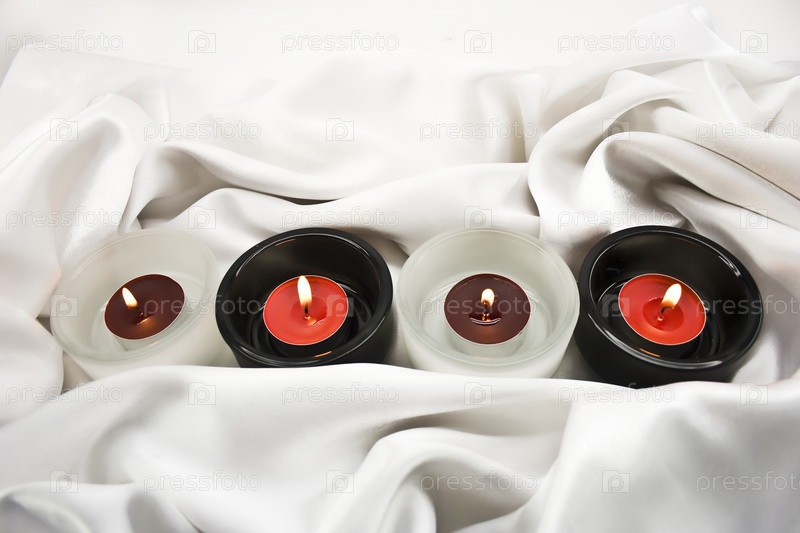 Свеча в светильниках на белом шелке