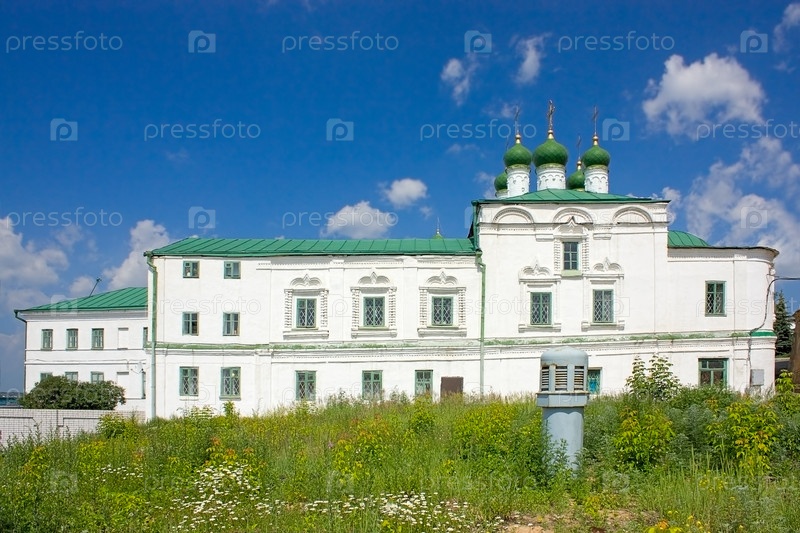 Церкви с куполами на фоне голубого неба. Казанский Кремль, Россия