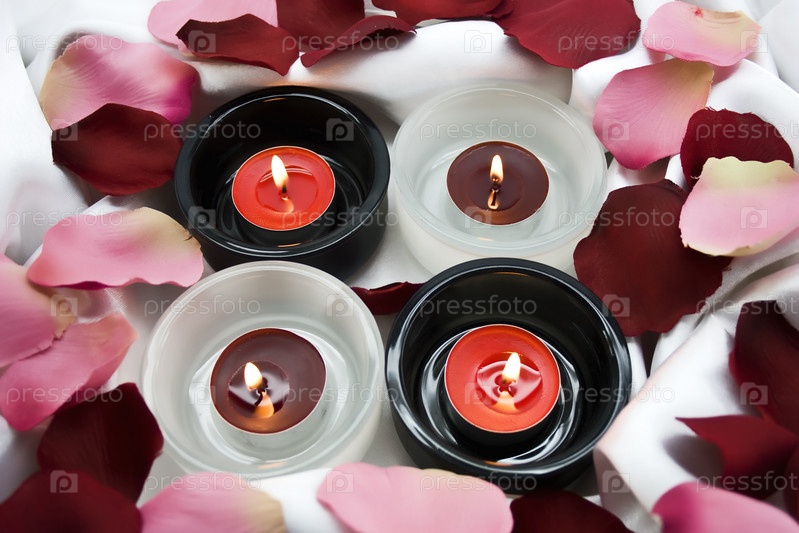 Свеча в светильниках на белом шелке