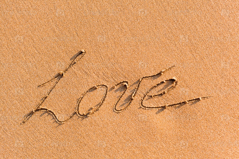 Слово ЛЮБОВЬ на песке
