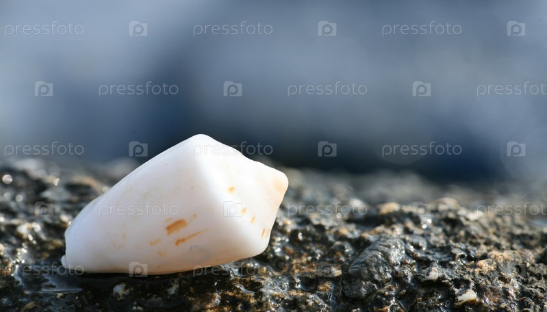 Белая ракушка на камнях