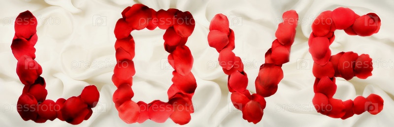 Слово 'любовь' из листьев роз