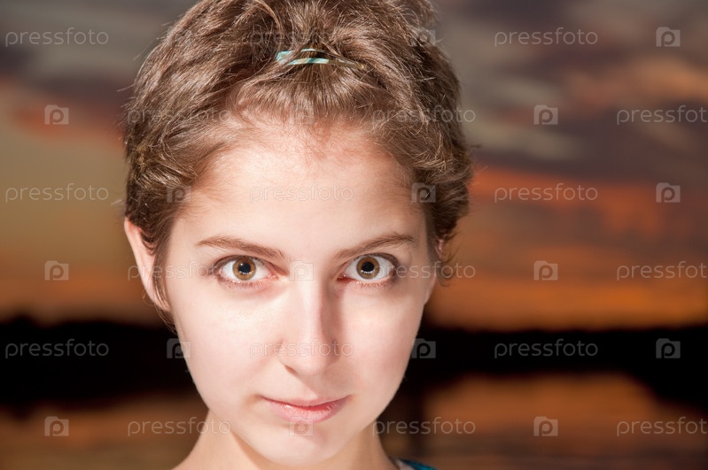 Портрет женщины на фоне заката