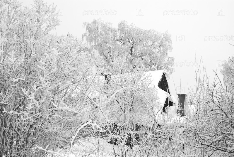 Деревенский дом в зимнем саду