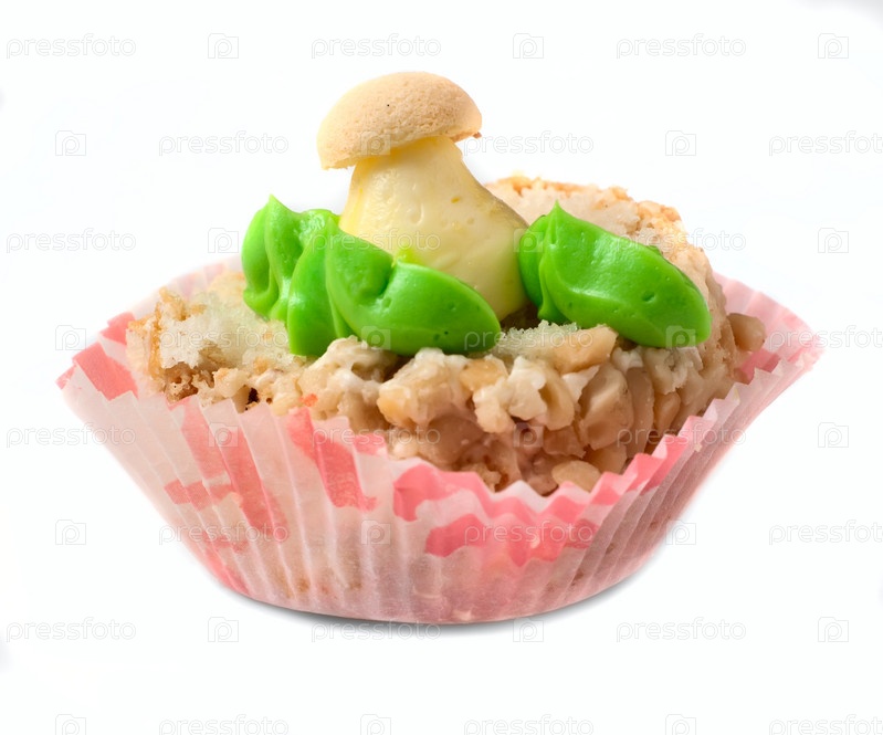 Пирожное с орехами и грибочком