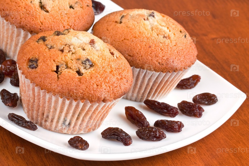Три кекса на белой тарелке