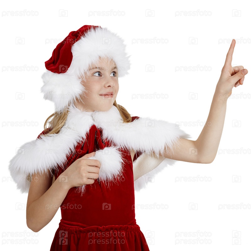 Удивленная девочка в новогоднем костюме