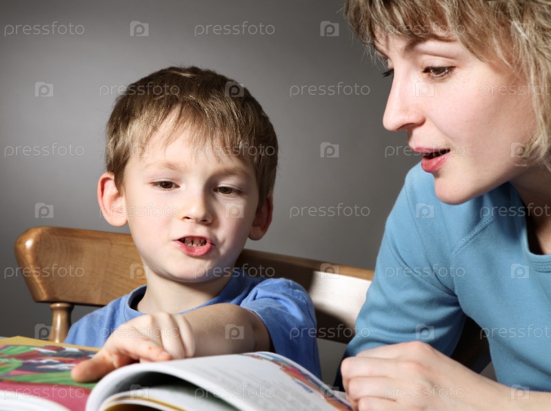 Мать учит сына читать